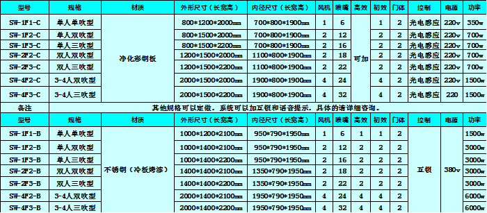 風(fēng)淋室配置說(shuō)明: